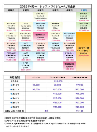 2025年4月からレッスンスケジュールが新しくなります!